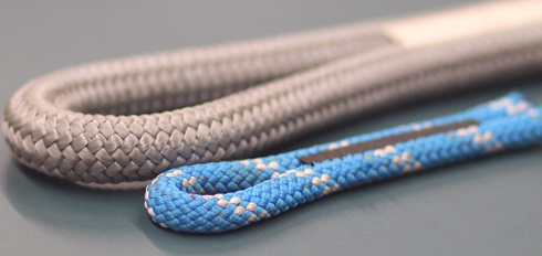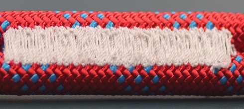 登山绳和攀岩绳的末端加固缝就是通过套结技术两条绳子缝合在一起形成安全环。一般是从里向外缝三次,以达到极限缝纫强度。通常情况下第三次缝纫要超过两条绳各自的中心,线缝的抗拉强度超过绳子本身:
