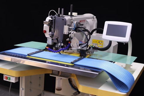 HighTex GLK700-5030大面积可编程厚料花样缝纫机,是为欧洲重型吊装带生产商定制的自动化缝纫设备,专门用于缝制300毫米宽的重型起重吊装带(30吨)和6号极粗线(= Tex-450,1500d X 3,V462)。带自动剪线,自动化程度高。一个缝纫工可同时操作两台设备,极大程度节省工厂的人工成本。