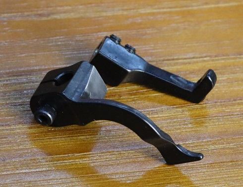 205F02 Double toe saddlery presser foot sets: curved design of outside double toe presser foot allows closer stitching around edge of hardware, ideal for sewing halters, bridles and harnesses.