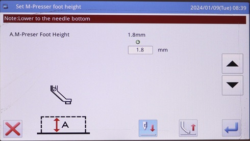 5. La altura del prensatelas se puede ajustar simplemente introduciendo un valor numérico en el panel LCD o el panel de control, sin necesidad de usar herramientas;