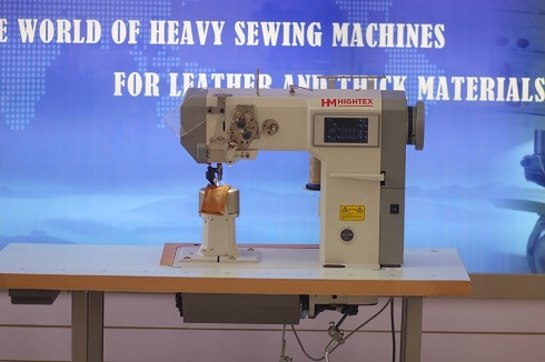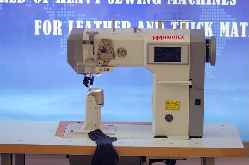Одноигольная колонковая машина челночного стежка с унисонной подачей верхнего и нижнего ролика и иглы и прямым приводом, с автоматической обрезкой нити, закрепкой нити и автоматическим подъемом лапки, позиционером иглы и возможностью программирования количества стежков в строчке. Машина предназначена для шитья тяжелых материалов и кожи при изготовлении сумок, обуви, кожгалантереи. Система подачи ткани состоит из прижимного ролика, гребенки продвижения роликового типа и отклоняющегося игловодителя. Смотреть видео на YouTube