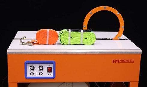 Станок для производства круглопрядные стропы HighTex RSM911 - это универсальное устройство для производства круглопрядных текстильных строп. Станок разработан для отмотки высокопрочного, как правило полиэстерового волокна, сбора его в пучок в виде кольца, с дальнейшим помещением его его в защитный чехол из тканого материла высокой прочности. Технологический контроль длины осуществляется измерителем, измеритель реализован на электронном счетчике.